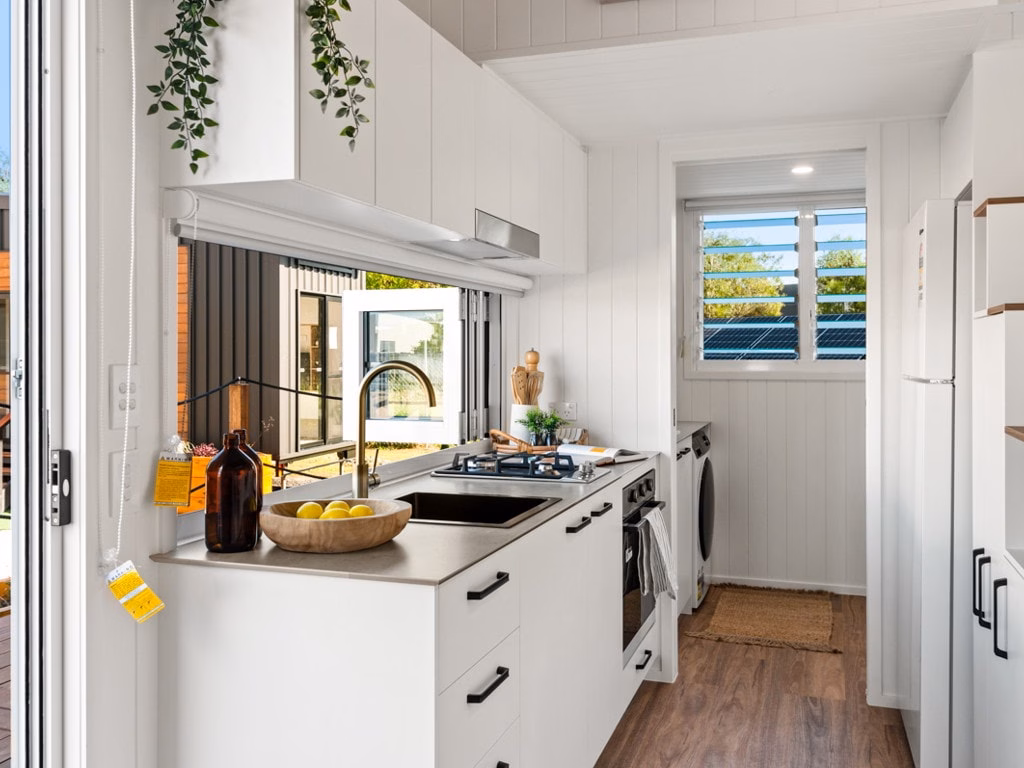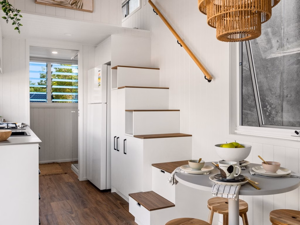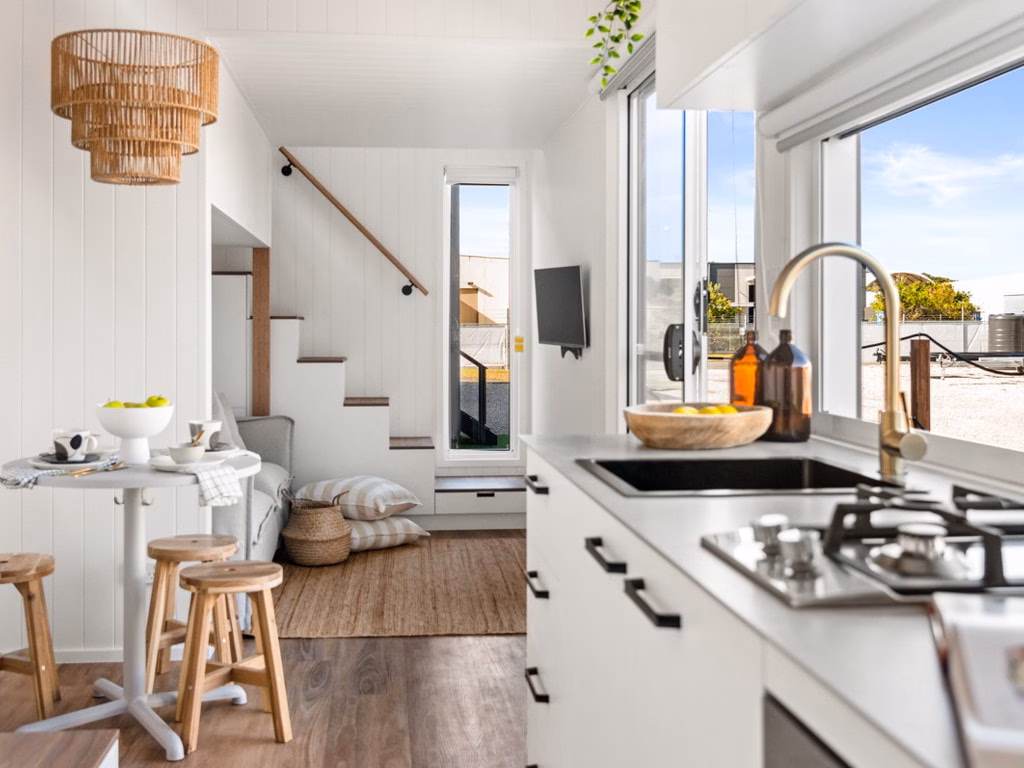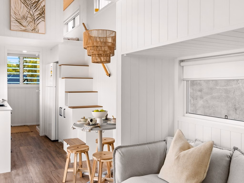 Even if youโve seen a lot of family tiny homes, the Yaroomba 8.4 still manages to feel fresh and exciting. This brand-new design from Aussie Tiny Houses really leans into the idea that small living doesnโt have to mean sacrificing comfort. Itโs spacious, cleverly designed, and carries that relaxed, vacation-style vibe that makes Australian tiny homes so appealing. For families, big or small, it shows how a home on wheels can genuinely work as a long-term living option.